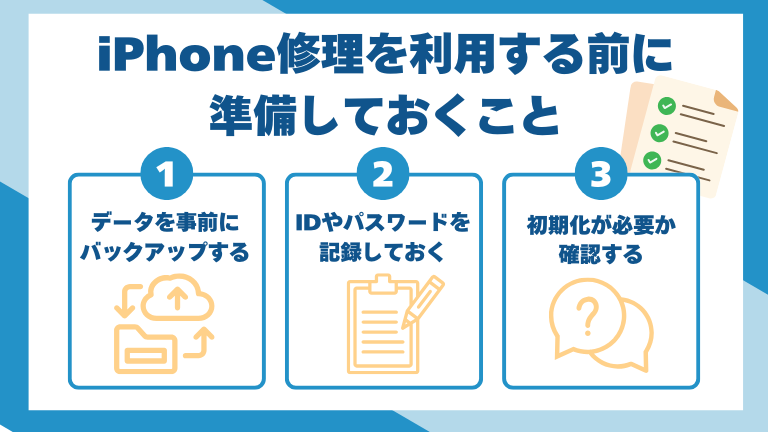 iPhone修理をスムーズに進めるためには、事前準備が欠かせません。